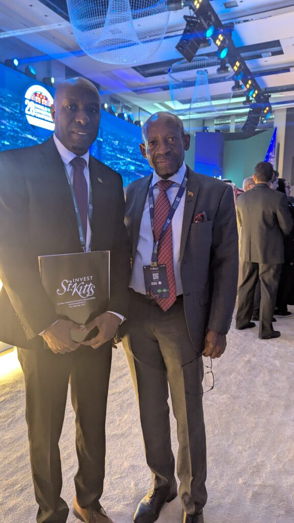 The Rt. Honourable Dr. Denzil L. Douglas, Minister of Economic Development and Investment et al shared St. Kitts and Nevis “Sustainable Island State vision at the 28th Edition of the World Investment Conference in Riyadh, Saudi Arabia. During the Ministerial Roundtable on Day 1 of conference, which is being held at the Fairmont Hotel in Riyadh. Senior Minister Dr. Douglas highlighted the government’s vision for transitioning to green energy, particularly solar and geothermal energy as the critical infrastructure that will underpin the Sustainable Island State economy and drive growth and development across key sectors such as tourism, ICT, Agriculture, the creative economy and manufacturing.