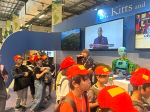 The St. Kitts and Nevis “Sustainable Island State” pavilion is creating waves and punching above its weight showcasing our country’s advancement in the areas of robotics and our advancements in education, particularly in the technical disciplines of science, technology, engineering and mathematics (STEM). As a country that prides itself on its technological advancement, many Japanese and visitors from across the globe to the St. Kitts and Nevis pavilion are in awe of our robotic display.